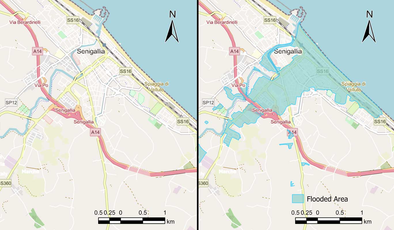 The Senigallia flood disaster of 2022 occurred in the coastal town of Senigallia, Italy, and was caused by intense rainfall that led to the overflow of the Misa River. The heavy rains in early May triggered flash floods, submerging large parts of the town, including residential and commercial areas. The flooding resulted in significant damage to infrastructure, property, and transportation networks, with widespread disruption to daily life.